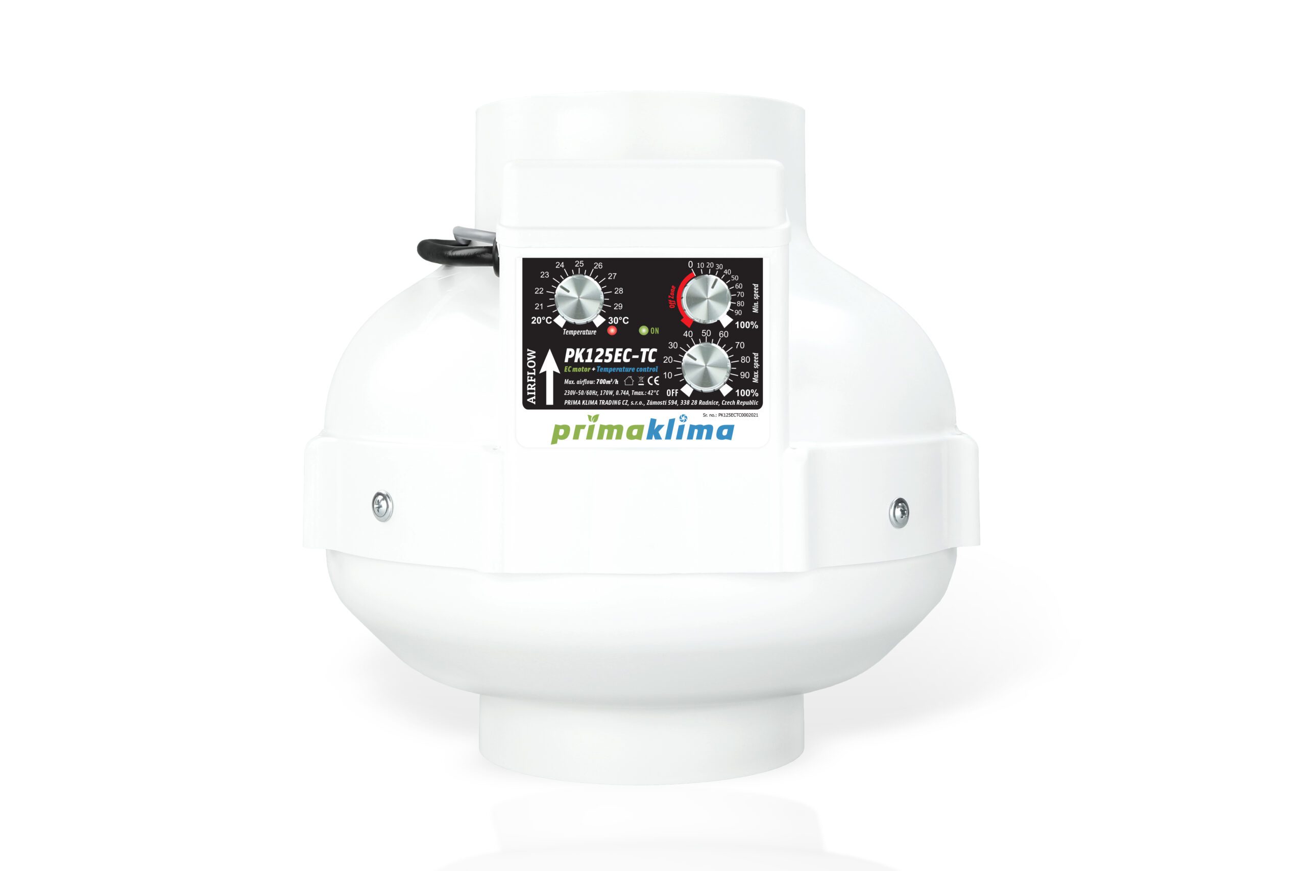 Prima Klima PK125EC-TC, Ø 125mm, max 680 m³/h, 170 W, Temperatur geregelt